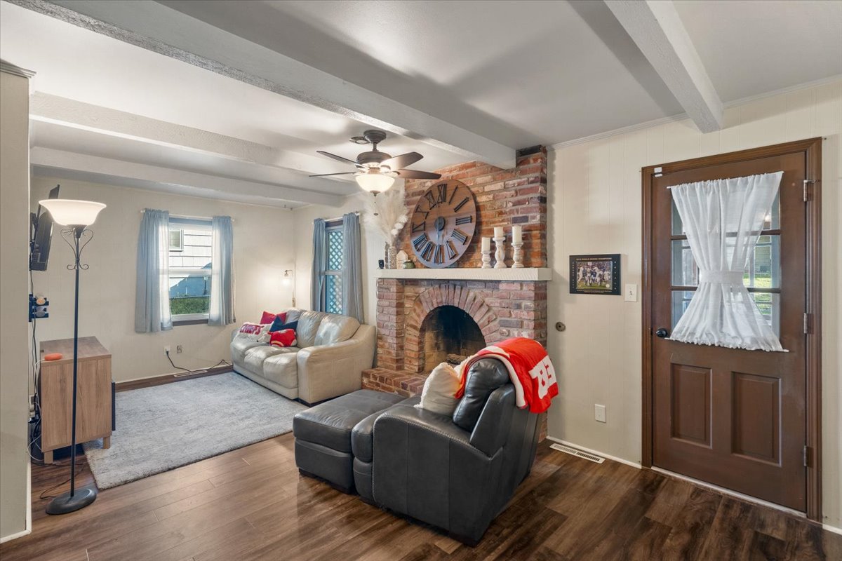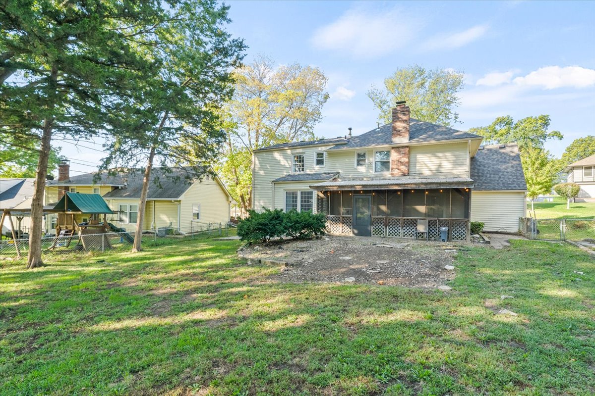 Super cute and well maintained home in convenient Red Bridge! The brick exterior creates instant curb appeal, and the charming and spacious interior will have you falling in love instantly. So many delightful details have been preserved, such as original wood trim and hardwood floors, but tasteful updates with paint and fixtures give the space a vintage flair with a modern twist - such a rare find these days! The main floor features a large family room as well as a cozy living room with a beautiful brick fireplace and access to the screened-in porch, so you have plenty of space to relax, and entertaining is easy with a formal dining room and nicely-sized eat-in kitchen with fresh white cabinets and big, bright windows. Upstairs, three large bedrooms and two full baths include a sprawling primary suite with double closets and a large private bathroom. The unfinished basement is clean and spacious and currently serves as a home gym and storage, but you could easily add some rugs and furniture for a rustic hangout space, or finish the basement for additional square footage. The huge, fenced yard is great for dogs, kids, or anyone who enjoys a little outdoor relaxation. Welcome home!