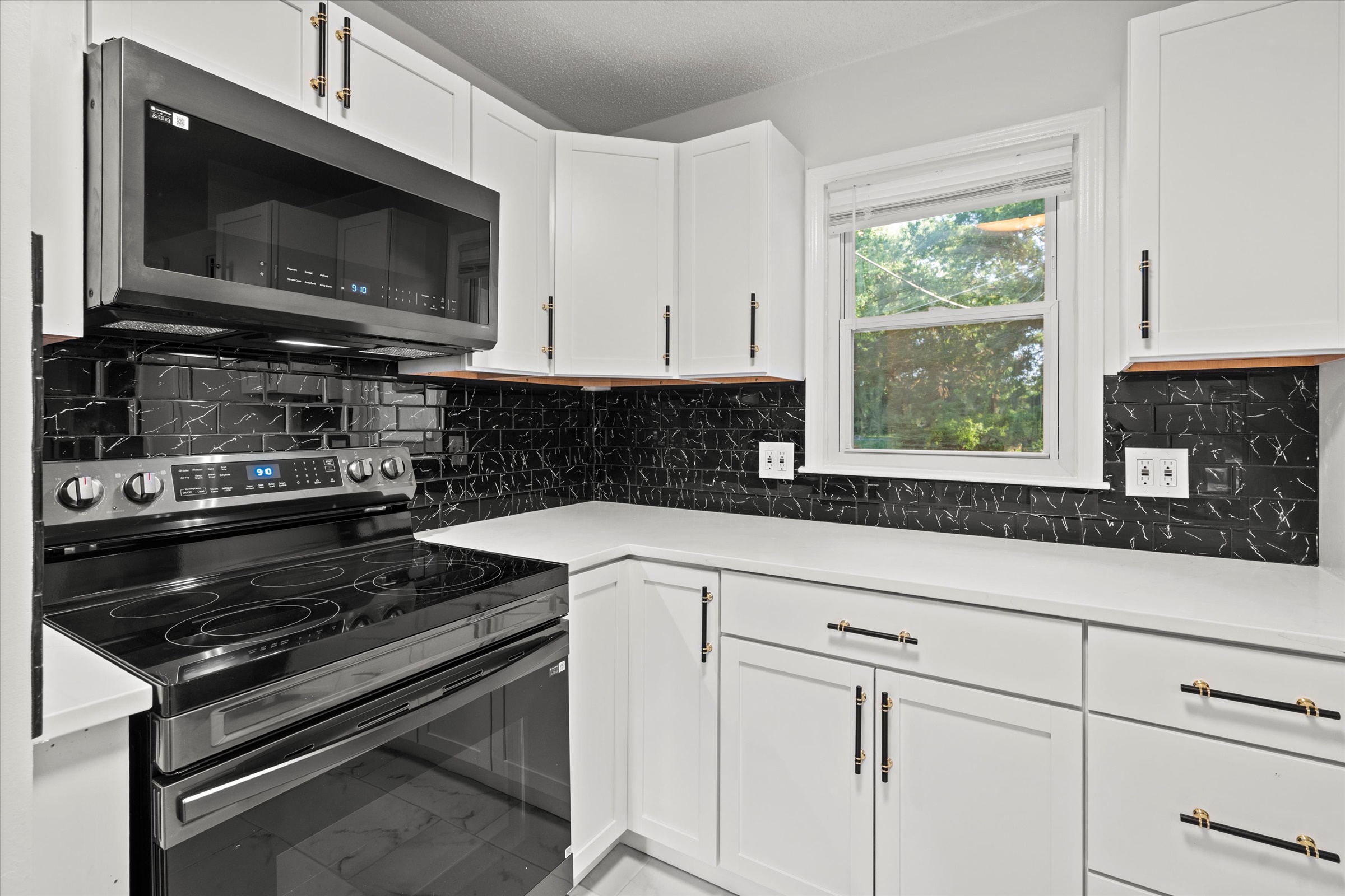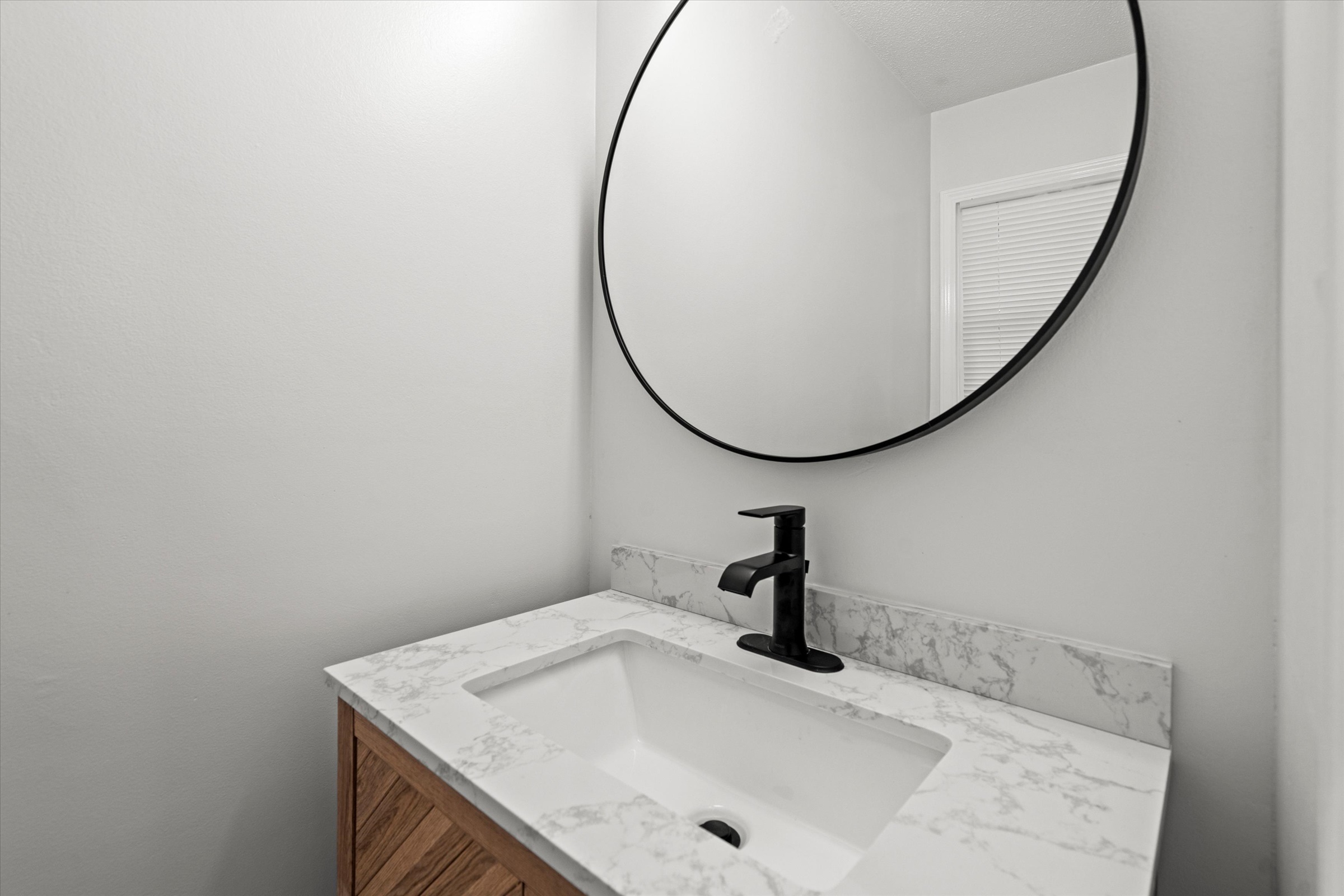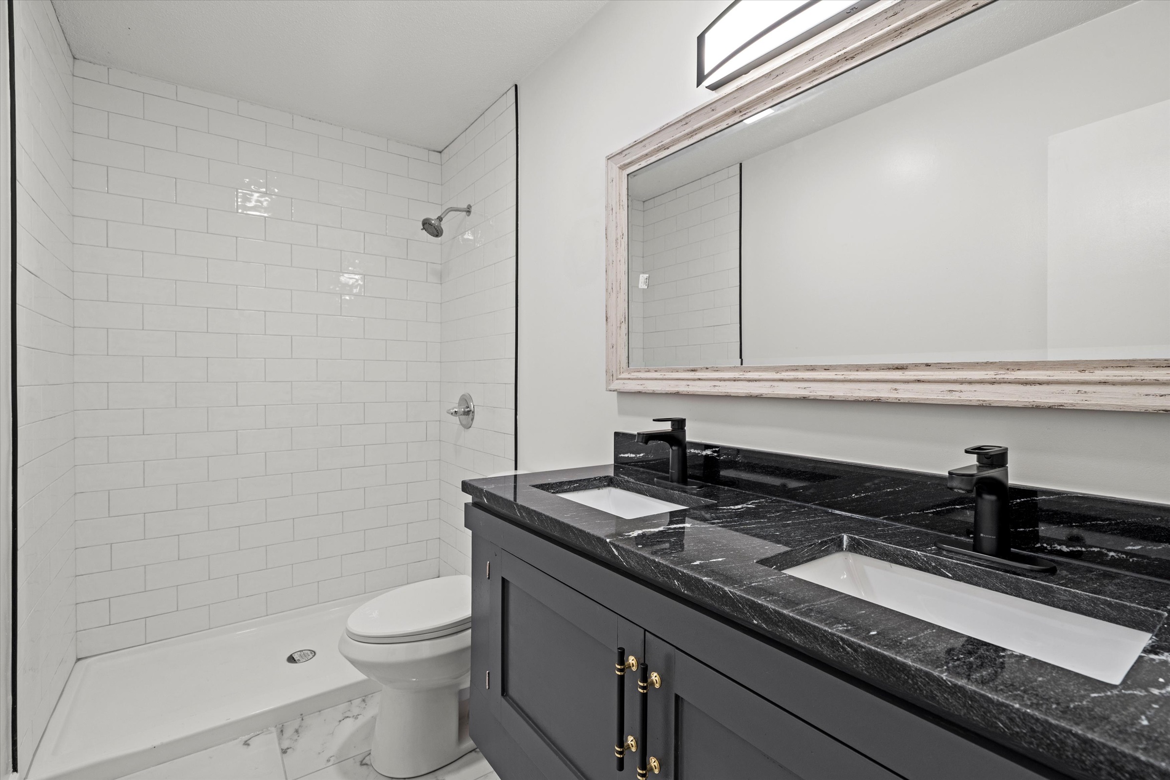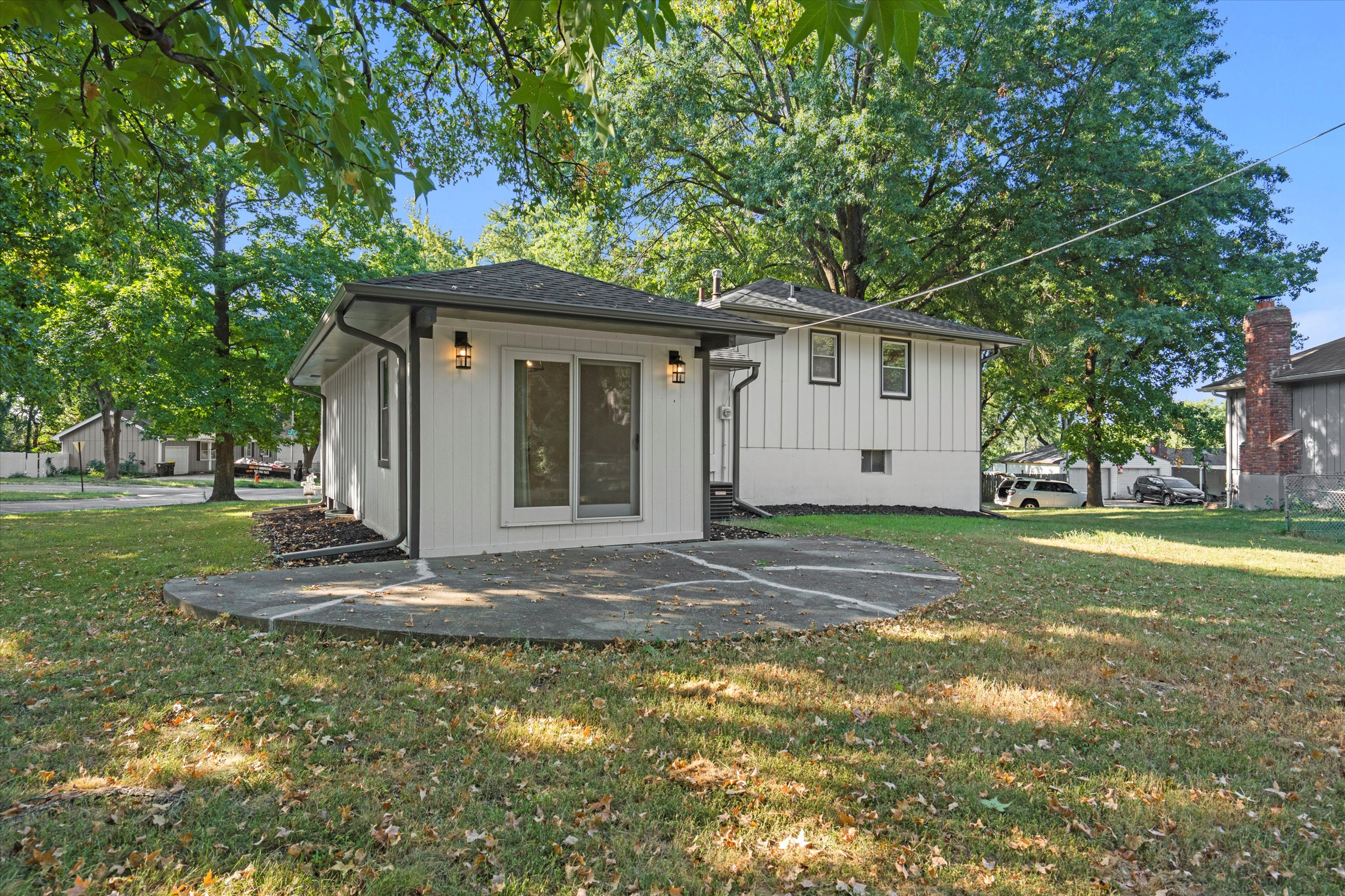 Beautifully redone side-to-side split with an open floor plan and sophisticated finishes throughout! The main living area flows effortlessly between the spacious living room and the stylish black-and-white kitchen, complete with a large island, ample cabinet storage, gleaming quartz countertops, and all new dark stainless steel appliances. The dining room opens up to the back patio and yard, making it easy to enjoy dinner indoors or al fresco. The primary bedroom has a private ensuite half-bath, and a large full bath with a double vanity and spacious shower plus two more bedrooms complete the bedroom level. Downstairs, the spacious unfinished basement is clean and painted so you can easily create additional living space with some rugs, furniture or a game table, or enjoy having plenty of clean and dry storage. Convenient location close to parks, schools, highway access and more. Welcome home!